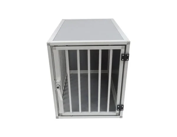De hondenbenches zijn stevig, voorzien van degelijke spijlen van 16mmn en stevig, veilig plaatwerk. Onze hondenbenches zijn voorzien van een goede grendel die de hond niet zelf kan openen. Deze bench is uitgevoerd met 2 dichte wanden waardoor de hond een rustige, tochtvrije plek in uw huis kan krijgen, door de spijlenwanden houd de hond wel het contact met de overige bewoners. Doordat de bench is uitgevoerd met geanodiseerd aluminium in combinatie met het grijze plaatwerk is het design compleet, en heeft de hond een veilige, stevige maar ook zeer mooie bench.