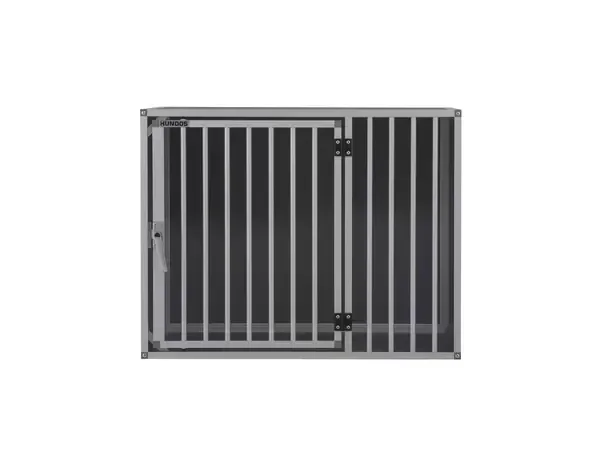 De deur van deze bench bevindt zich in de lange wand. De draai richting van de deur kan naar links of naar rechts. Het hang en sluitwerk is van degelijk metaal. Door het plaatsen van een deuraanslag kan de deur van de kooi nooit naar binnen in de bench vallen. Daarnaast is de grendel van de bench voorzien van een drukknop, zo kan de hond nooit uit zichzelf de bench openen.